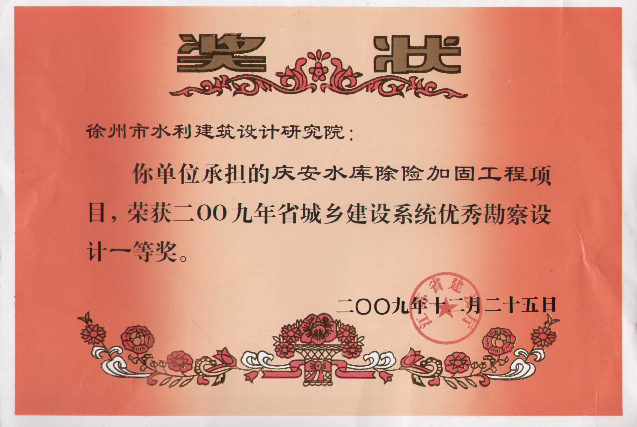 《慶安水庫除險加固工程》省城鄉(xiāng)建設系統(tǒng)勘察一等獎(2