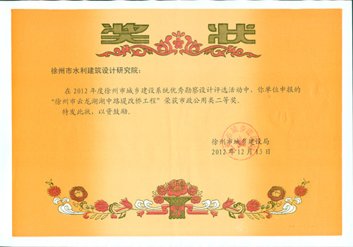 “徐州市云龍湖堤改橋工程”榮獲市政公用類二等獎