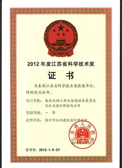 2012年度江蘇省科學(xué)技術(shù)一等獎(jiǎng)
